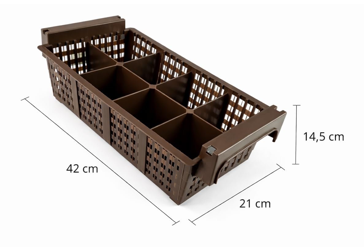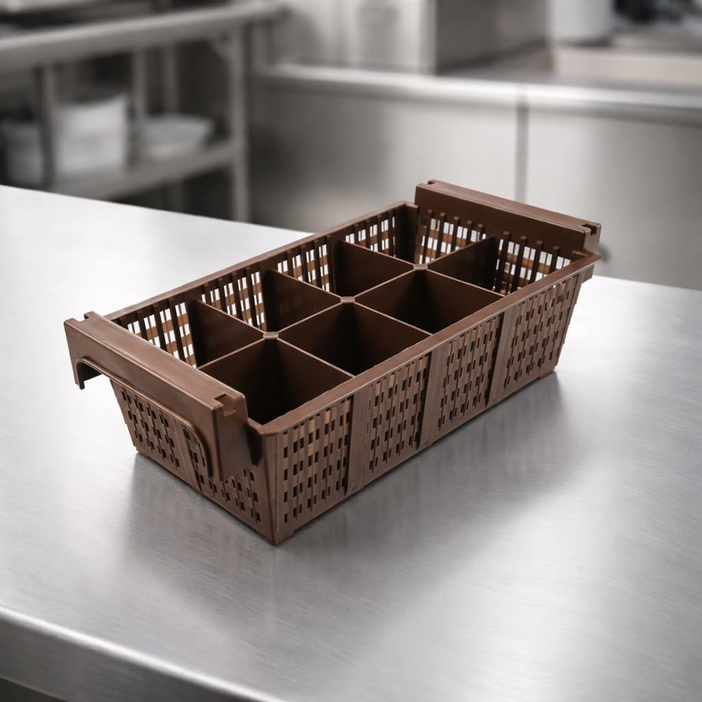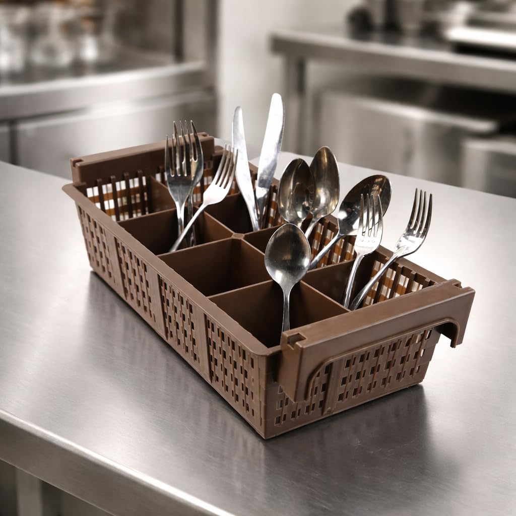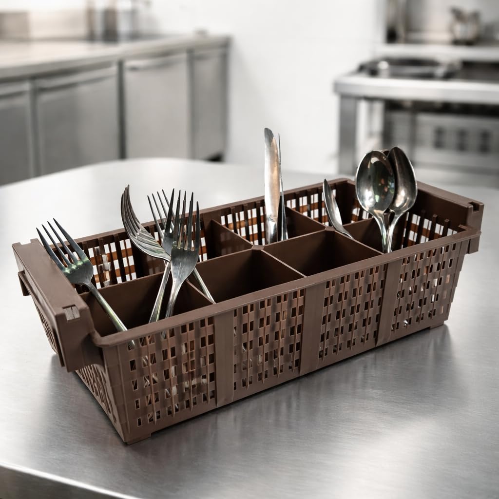 MORLEOS Besteck Spülkorb für Gastro Spülmaschinen, Besteckkorb mit 8 Fächern, Spülmaschinenkorb Gastronomie Kunststoff, Besteckhalter Spülmaschine, Restaurant Hotel Großküche, Braun 42 x 21 x 14,5 cm