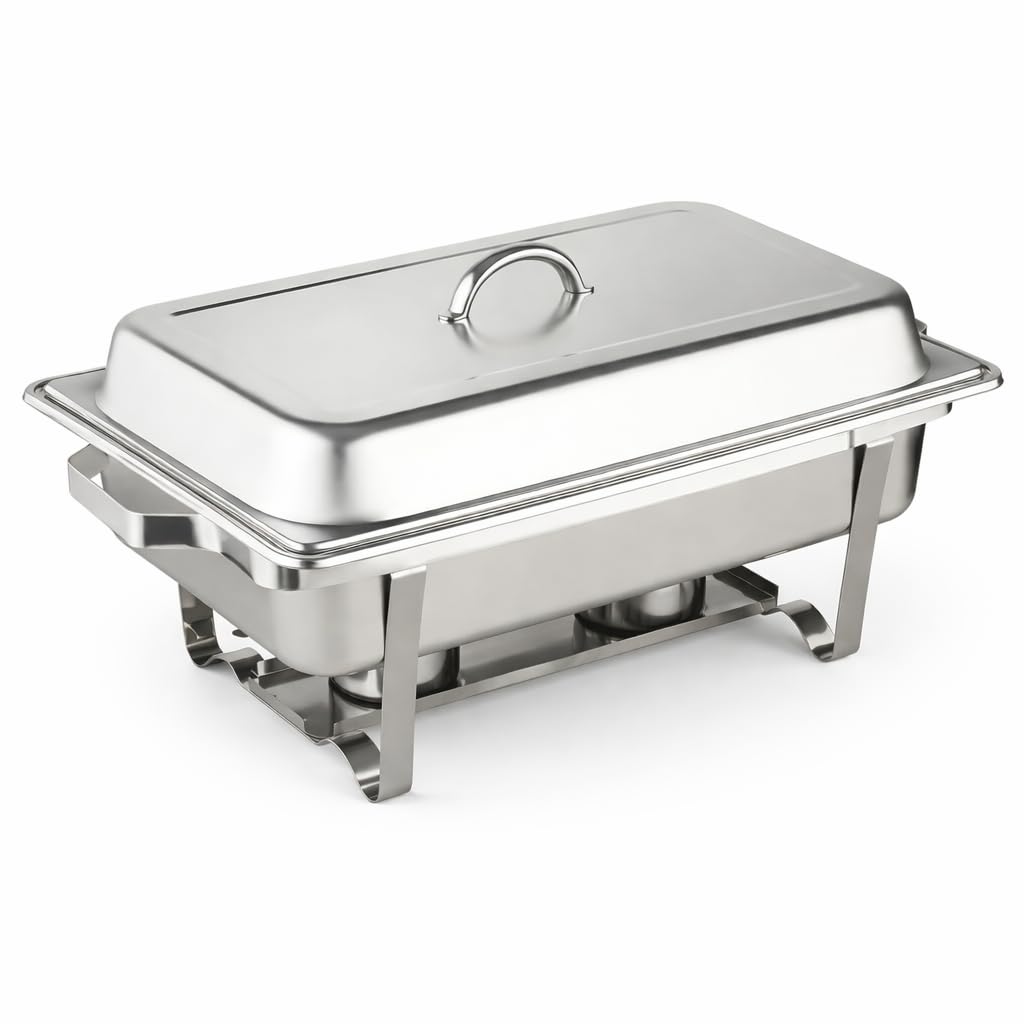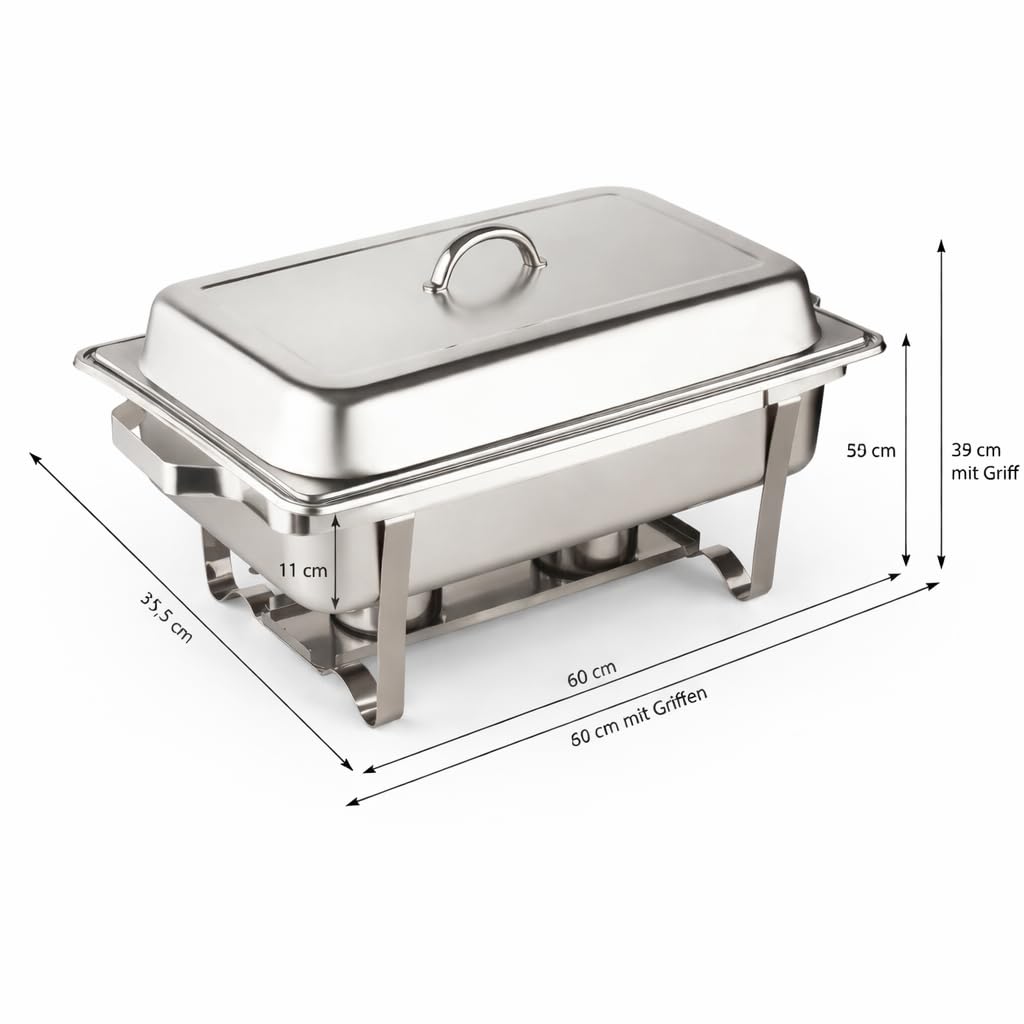 - • Vielseitige Anwendungen: Der Chafing Dish ist nicht nur ein Speisewärmer, sondern auch ein eleganter Buffetwärmer, der Ihrem Catering einen Hauch von Klasse verleiht.