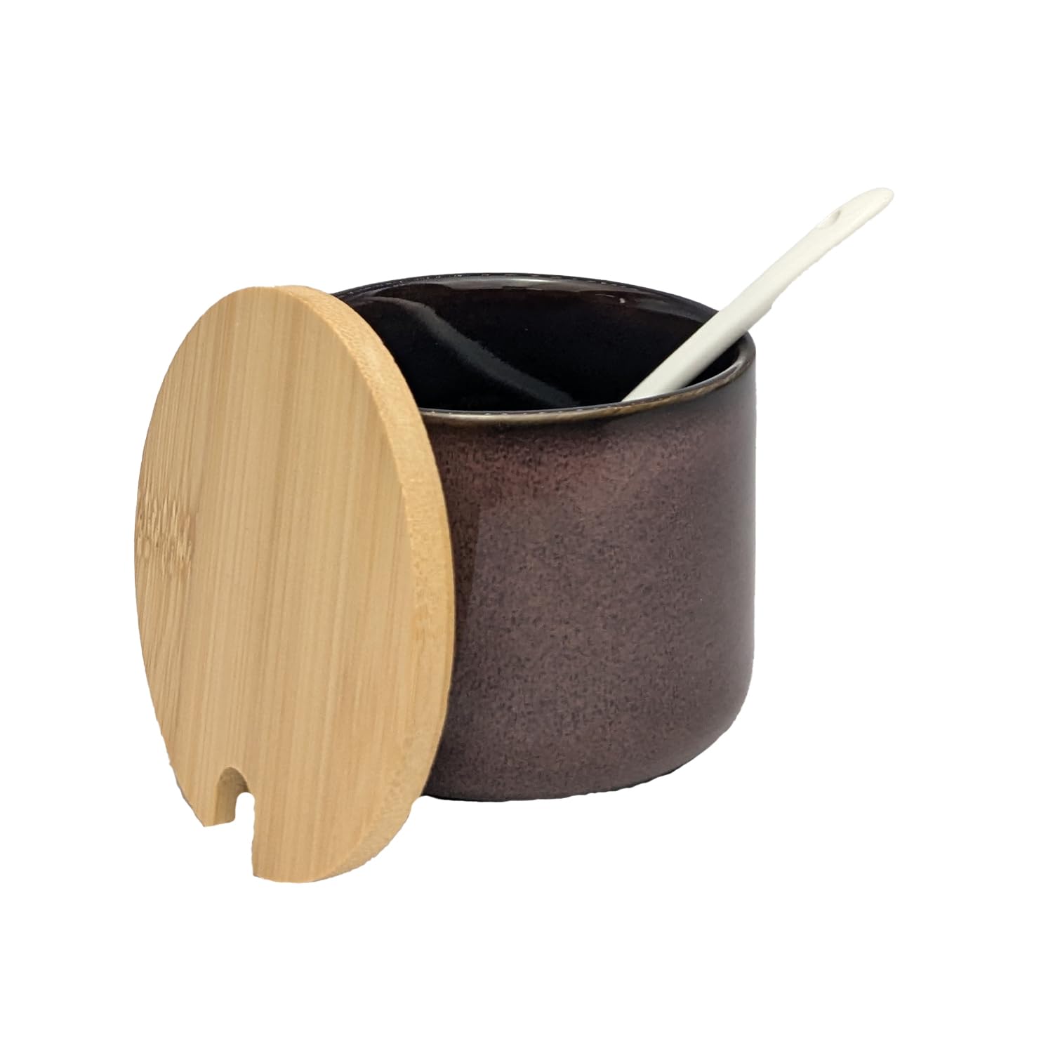 - • Dekorative Aufbewahrung: Diese hübsche Keramikdose mit Bambusdeckel und Löffel eignet sich perfekt zur Aufbewahrung von Zucker, Salz, Tee oder Gewürzen.