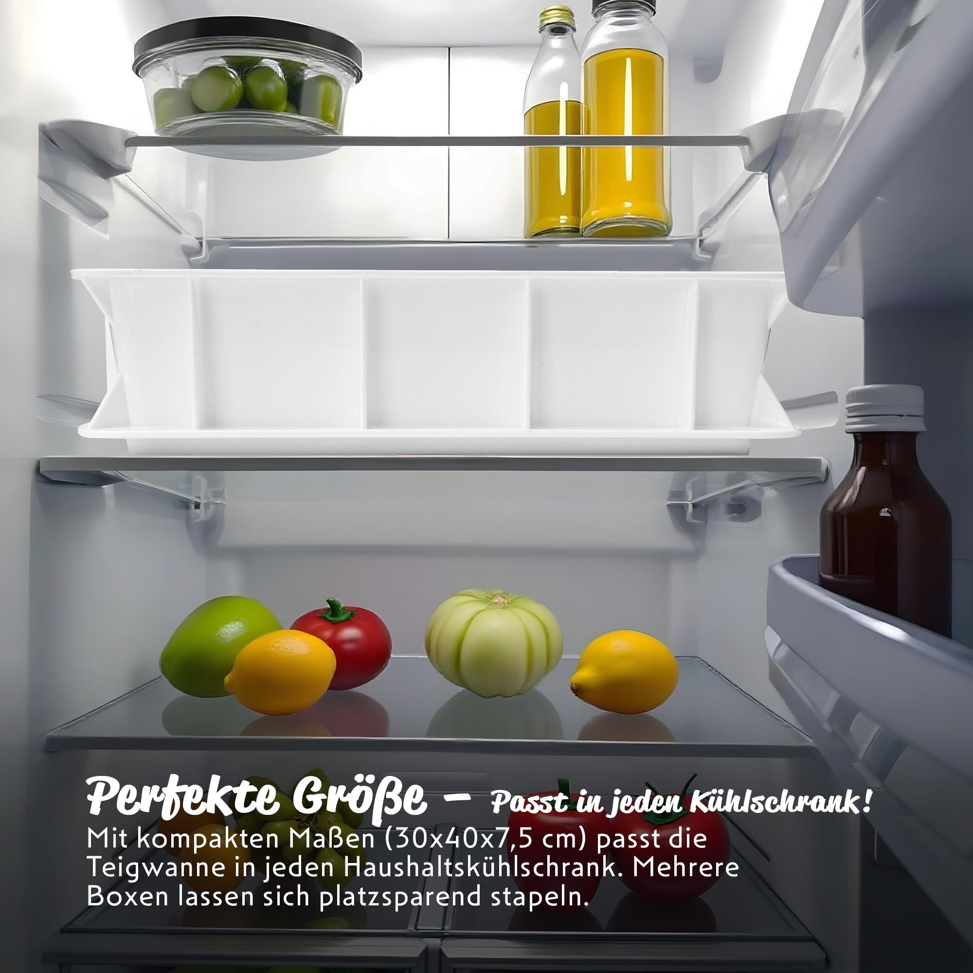 - • Pizzaballenbox 30×40×7,5 cm: ideal für kalte/lange Teigführung, stapelbar, deckeldichtes Mikroklima – perfekt für Kühlschrank & Home-Bäckerei.