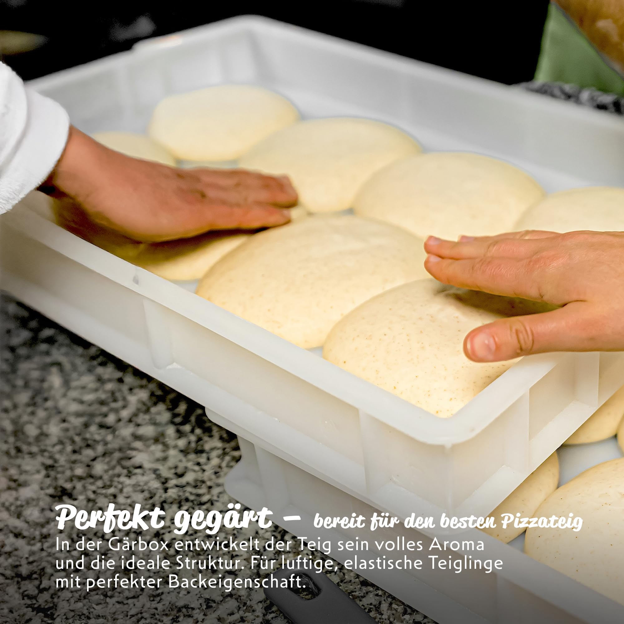 Pizzaballenbox Set – Gärbox 30x40x7,5 cm mit Deckel + 4x San Marzano DOP Tomaten + Mehle von Molino Dalla Giovanna (LaNapoletana, Semola, Uniqua) + Farina per Pizza + 2x Paneangeli Hefe + E-Book