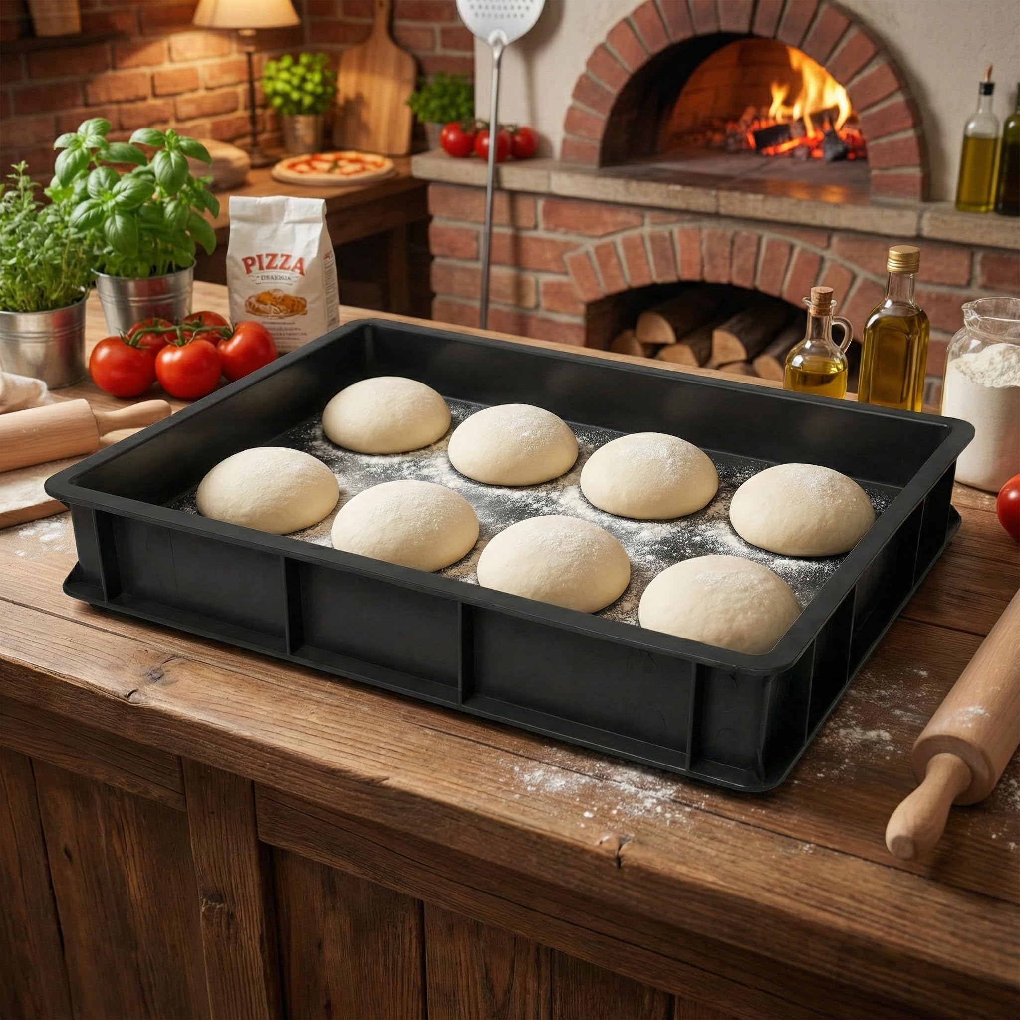 - • Durch die geschlossene Umrandung kann mit einem passenden Deckel oder weiteren Teigballenkiste der Inhalt hervorragend gegen Staub und Verunreinigung geschützt werden. Somit sind die Teiglinge oder Zutaten wie Wurst, Käse, Gemüse usw. sicher und geschützt aufbewahrt.