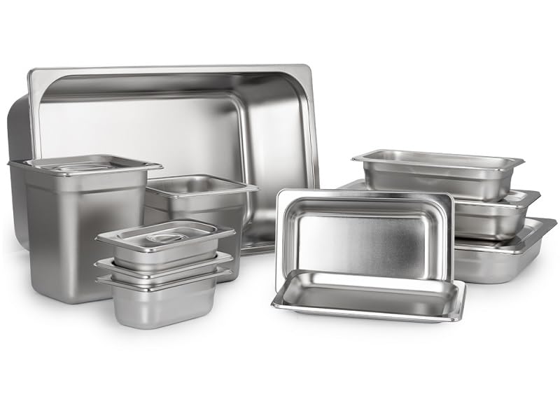 - • Flexibilität: Durch die Möglichkeit, Speisen mit den Gastronomiebehältern im Ofen zu braten, zu garen oder zu kochen und der dadurch entstehenden Nutzbarkeit mit dem Backofen, Grill oder Herdplatte, wird der Lebensmittelbehälter aus silbernem Edelstahl ein ideales Restaurant und Catering Zubehör. Die Reinigung durch die Spülmaschine oder per Hand ist beides möglich. Zudem ist es mit Chafing Dish, Saladette, Dampfgarer, Speisewärmer, Bain Marie, Sous-Vide Garer und Wärmebehälter verwendbar.