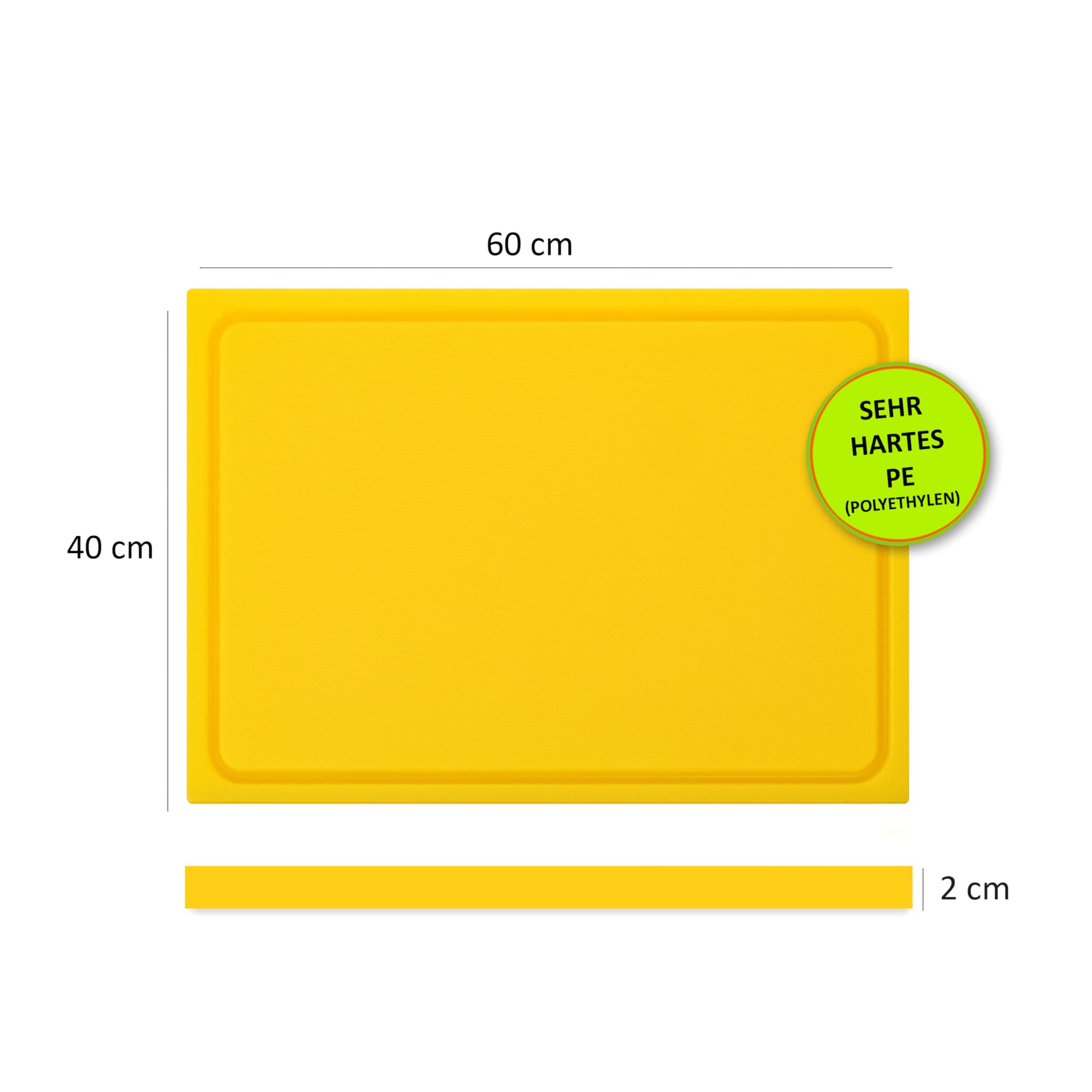 Morleos Schneidebrett Eco-Line Kunststoff spülmaschinenfest, extra schwer, messerschonend | ver. Farben & Größen | HACCP Gastro Küchenbrett | Schneidbrett mit Saftrille (Gelb - yellow, 60x40x2 cm)