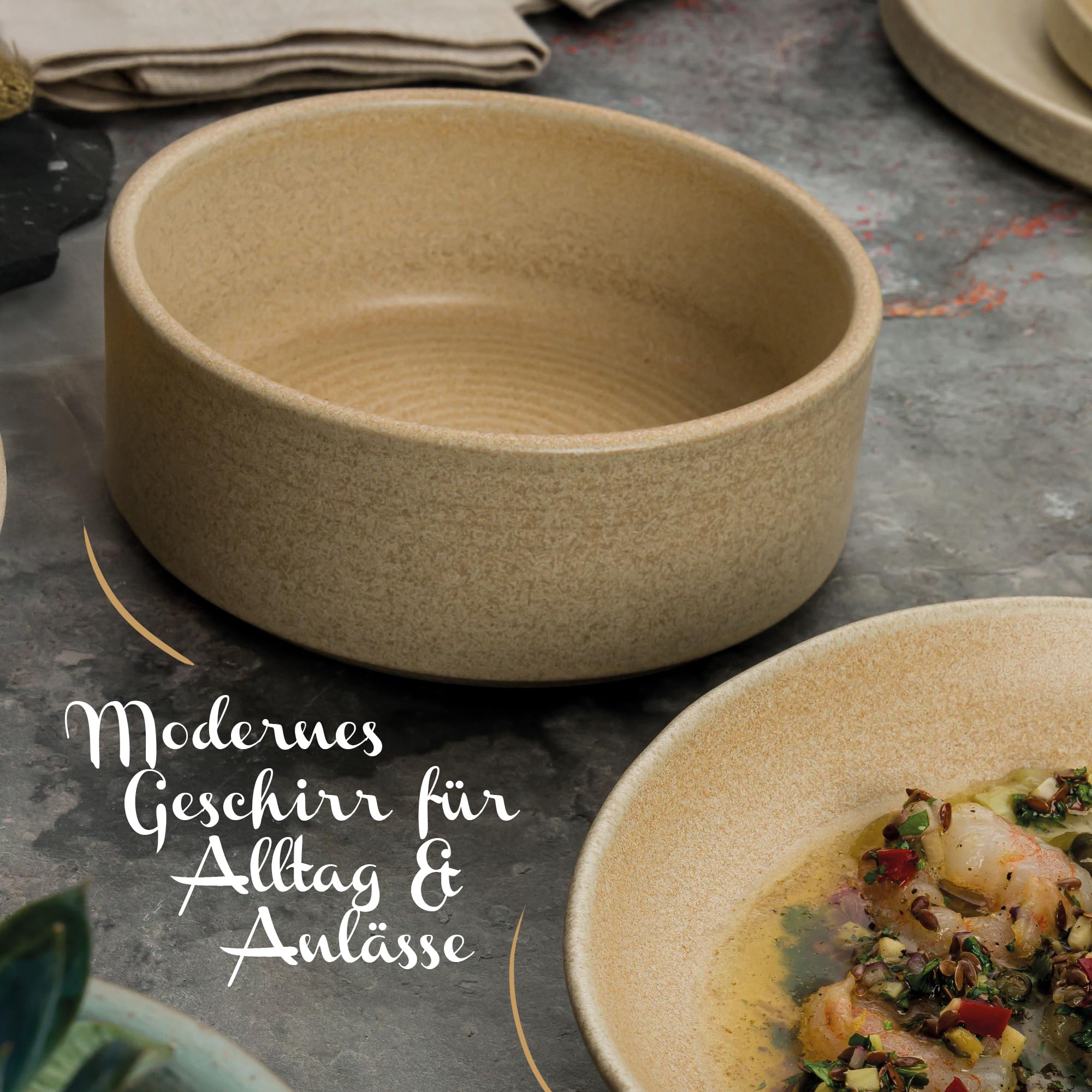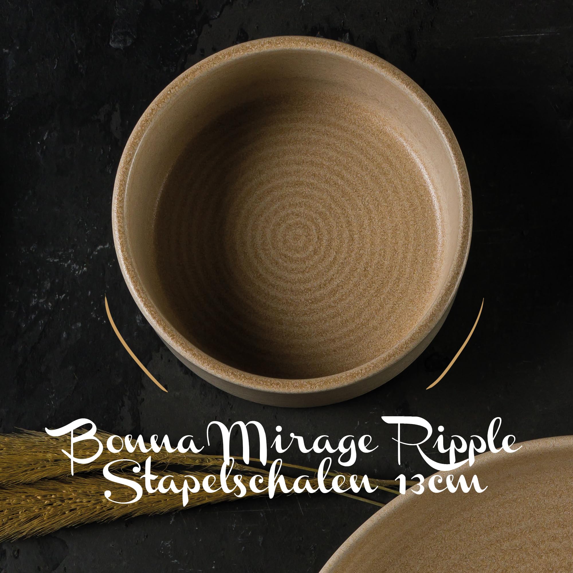 Bonna Mirage Ripple Stapelschalen 18 cm – 6er Set, 1020 ml | Porzellan beige | modernes Geschirr für Alltag & Gastronomie | spülmaschinen- & mikrowellengeeignet | MRGRPL18JO