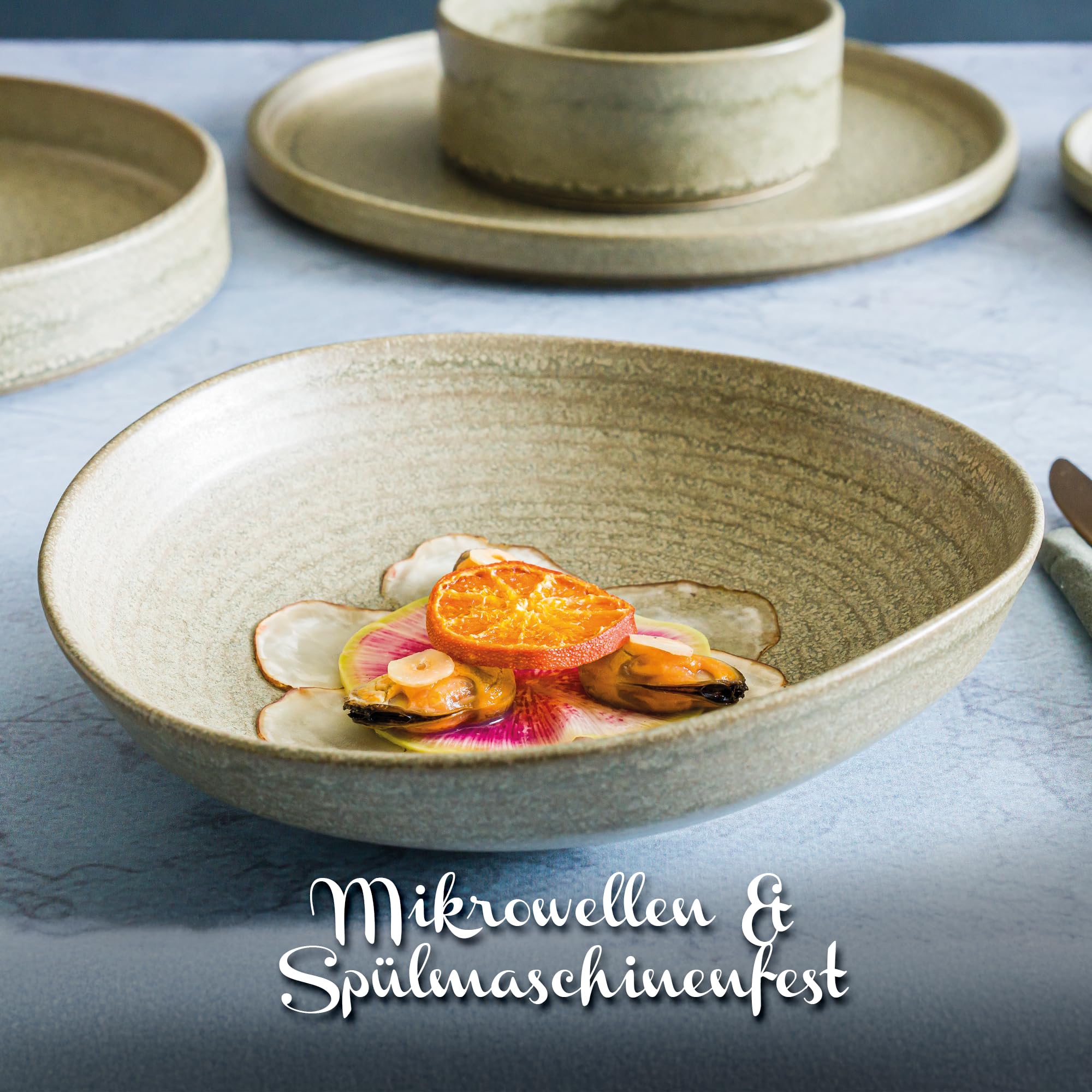 - • Elegantes 6er-Set – tiefe Teller Ø 26 cm aus hochwertigem Porzellan in stilvollem grün
