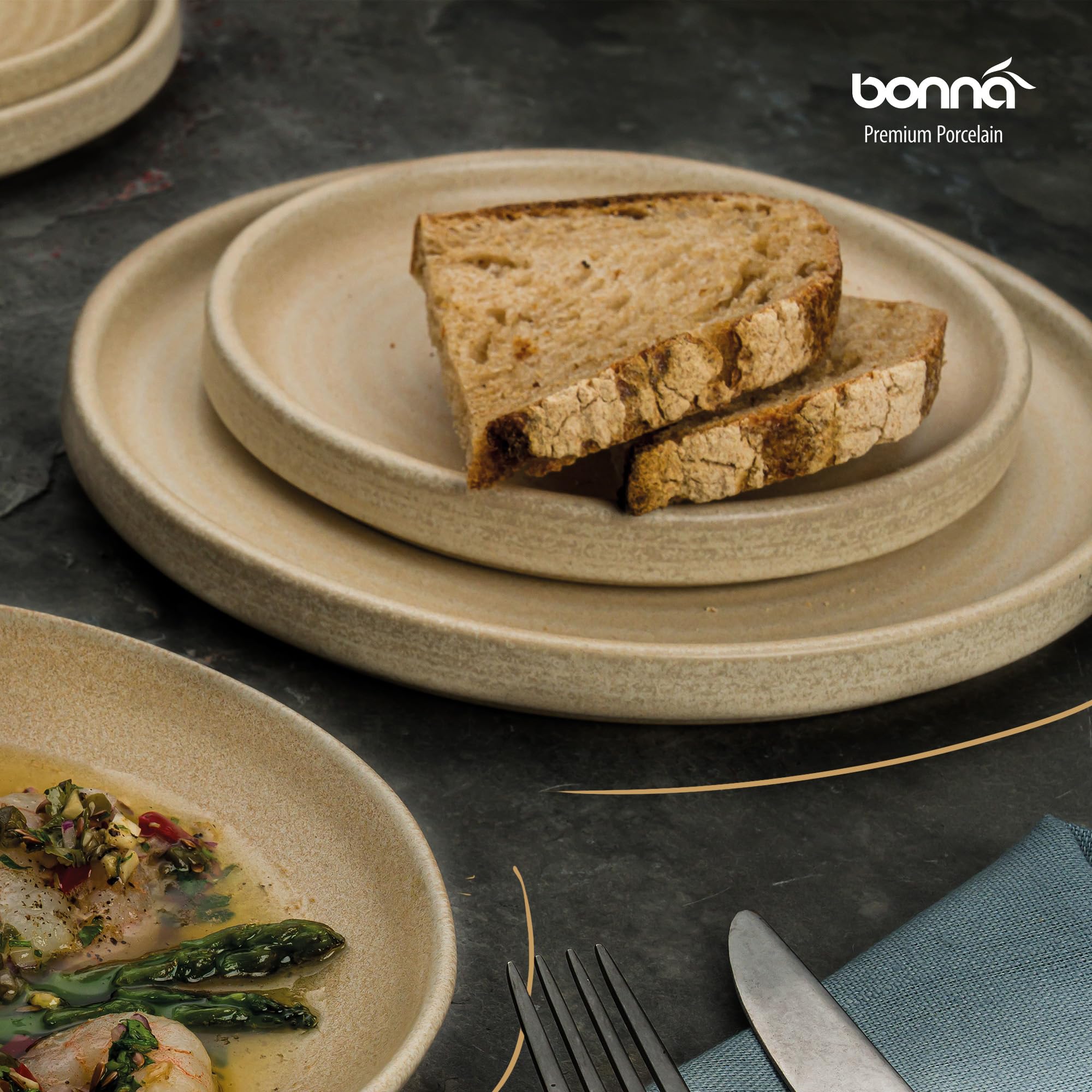 Bonna Mirage Ripple Speiseteller 21 cm – 6er Set | Porzellan Beige | Flache Teller für Alltag, Anlässe & Gastronomie | Spülmaschinen- & Mikrowellengeeignet | MRGRPL21DZ