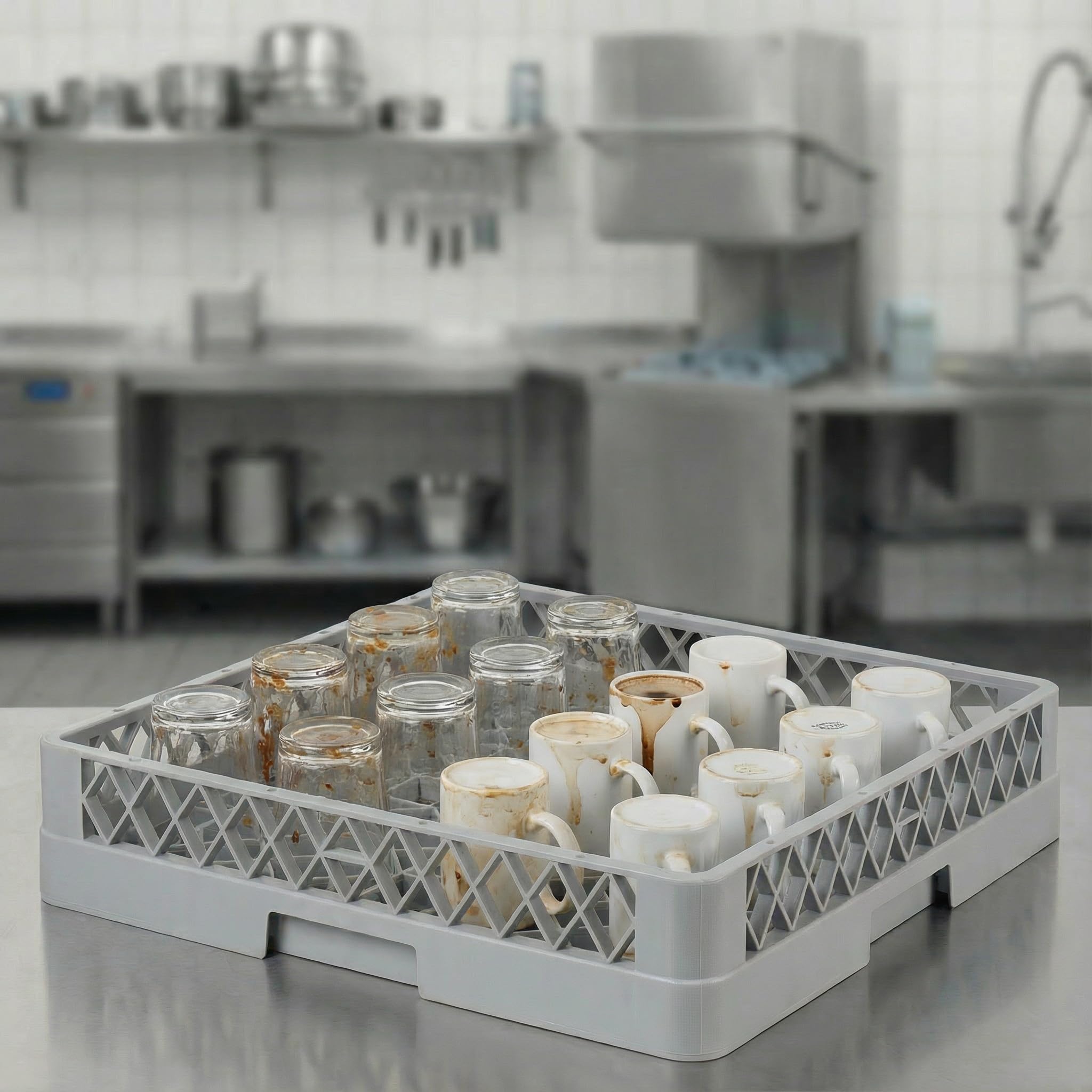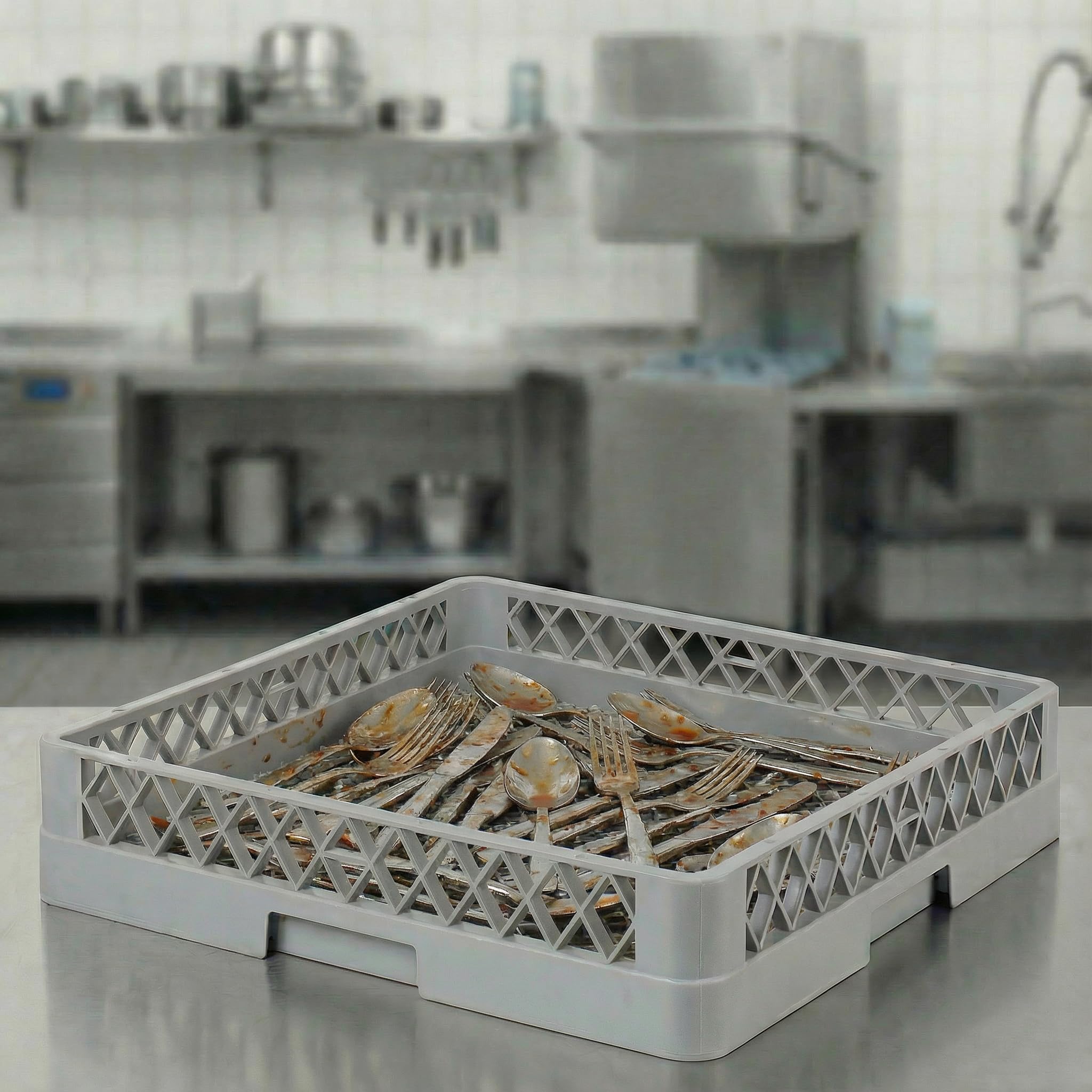 Gastronomie Profi Spülkörbe für Teller - Besteck - Gläser - Tassen Details: Tellerspülkorb für 500x500x100 mm Normen Spülmaschinen aus Polypropylen in der Farbe Grau - Der Spülkorb besitzt 64 Fingern und ist für Teller und Tablets geeignet, da diese dadurch optimal gereinigt werden können. Besteckspülkorb für 500x500x100 mm Normen Spülmaschinen aus Polypropylen in der Farbe Grau - Der Universalspülmaschinenkorb ist feinmaschig und ohne Einteilung und ideal für das Besteck, da eine große Menge an Besteck und Kleinteile darauf gereinigt werden können. Gläserspülkorb für 500x500x100 mm Normen Spülmaschinen aus Polypropylen in der Farbe Grau - Der Universalspülmaschinenkorb grobmaschig und ohne Einteilung ist für Gläser und Tassen jeglicher Art geeignet. Die Spülmaschinenkörbe sind für gewerbliche Spülmaschinen " Gastronomie " vieler Hersteller wie Winterhalter, Hobart, Meiko usw. verwendbar. Die Spülmaschinenkörbe sind stapelbar, stabil und für alle herkömmlichen Gastronomie Spülmaschinen geeignet da sie durch ihre Beschaffenheit robust und langlebig sind. Die Höhe der Körbe kann bei Bedarf erweitert werden. Die Spülmaschinenkörbe dienen auch nach der Reinigung zur Aufbewahrung und Lagerhaltung der Gläser. Die Körbe sind mit Gläsern stapelbar, wenn die Glashöhe niedriger ist als die Korbhöhe. Merkmale: •Material: Polypropylen •Spülkorb mit 64 Fingern (Teller) Außenmaß 49 x 49 x 10 cm (BxTxH) Innenmaß: 46,5 x 46,5 x 8,5 cm (BxTxH) - Fingerlänge: 7,2 cm •Universalspülmaschinenkorb feinmaschig und ohne Einteilung (Besteck) Außenmaß 49 x 49 x 10 cm (BxTxH) Innenmaß: 46,5 x 46,5 x 8,5 cm (BxTxH) •Universalspülmaschinenkorb grobmaschig und ohne Einteilung (Gläser) Außenmaß 49 x 49 x 10 cm (BxTxH) Innenmaß: 46,5 x 46,5 x 8,2 cm (BxTxH) P.S. Durch die Steckplätze am Rahmen sind diese Körbe individuell erweiterbar mithilfe unterschiedlichste Aufsatzränder. Messen Sie den Innenraum Ihrer Gewerbe - Spülmaschine ggfs. aus. Standardmäßig sind diese 50 cm breit und somit auch für diese Spülkörbe geeignet.